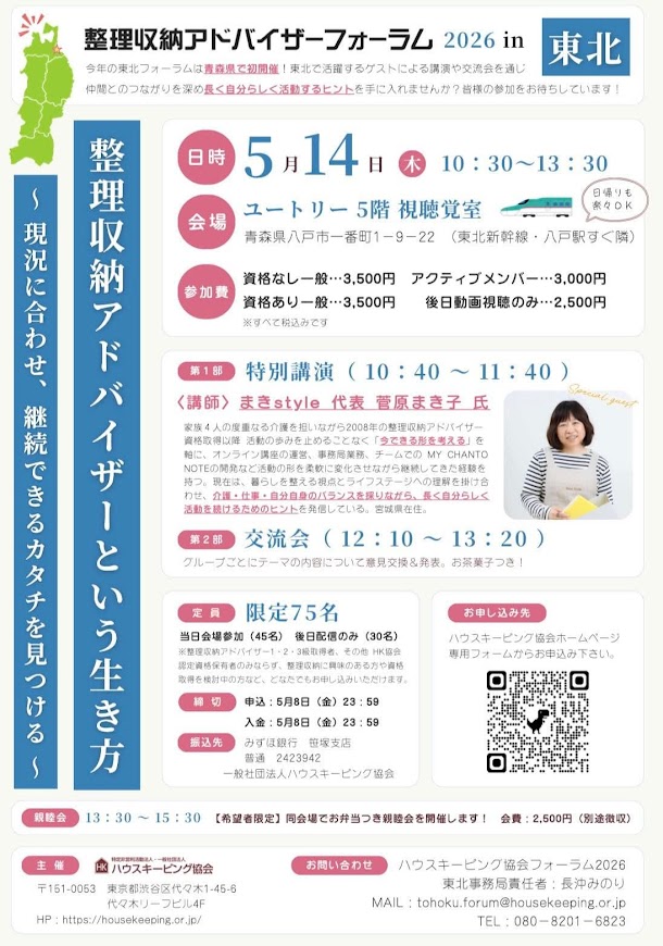 この春、青森県八戸市にて「整理収納アドバイザーフォーラム2026in東北」開催のお知らせ